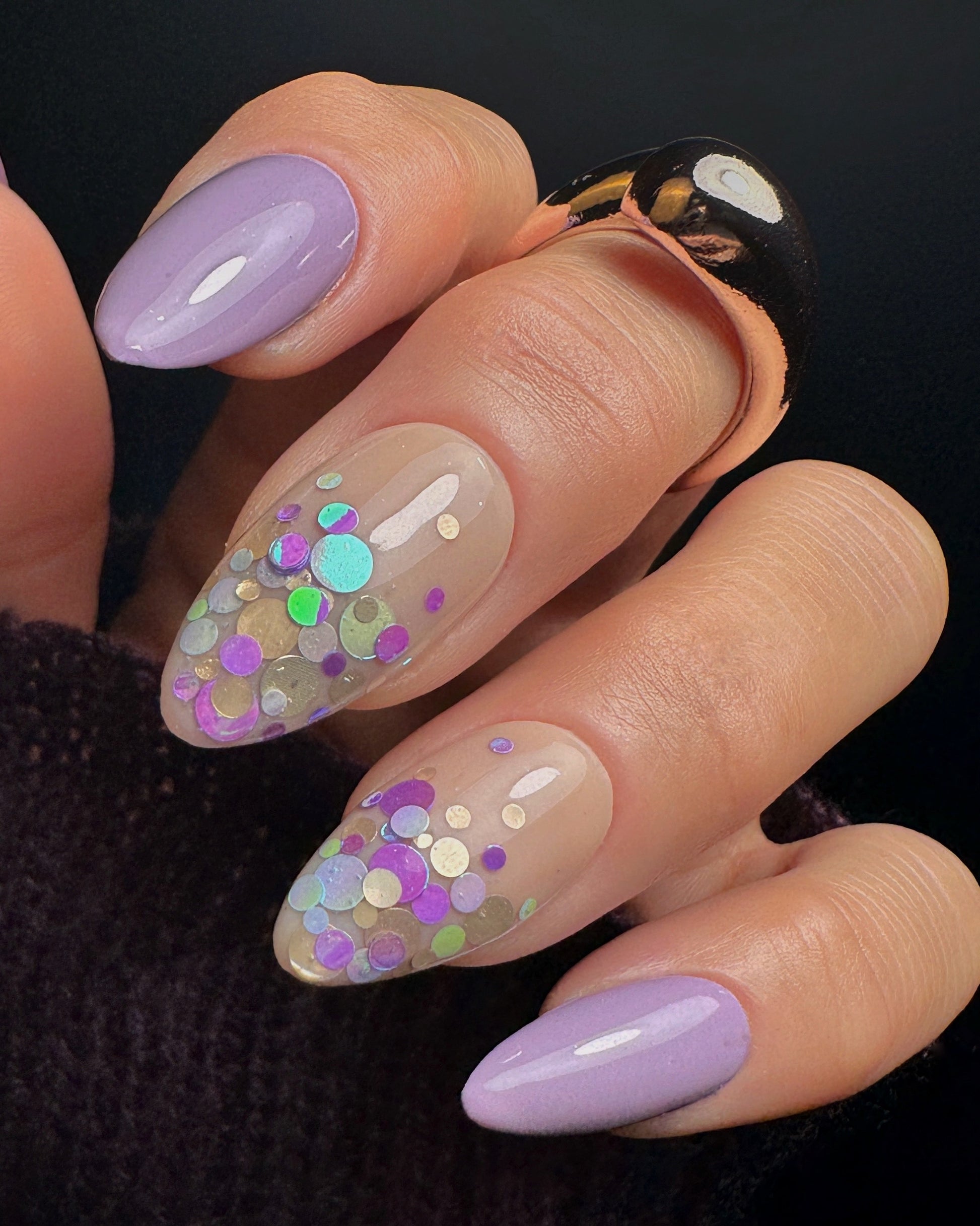 - Apply a precise dot of clear gel so the glitter has an anchor to adhere to.