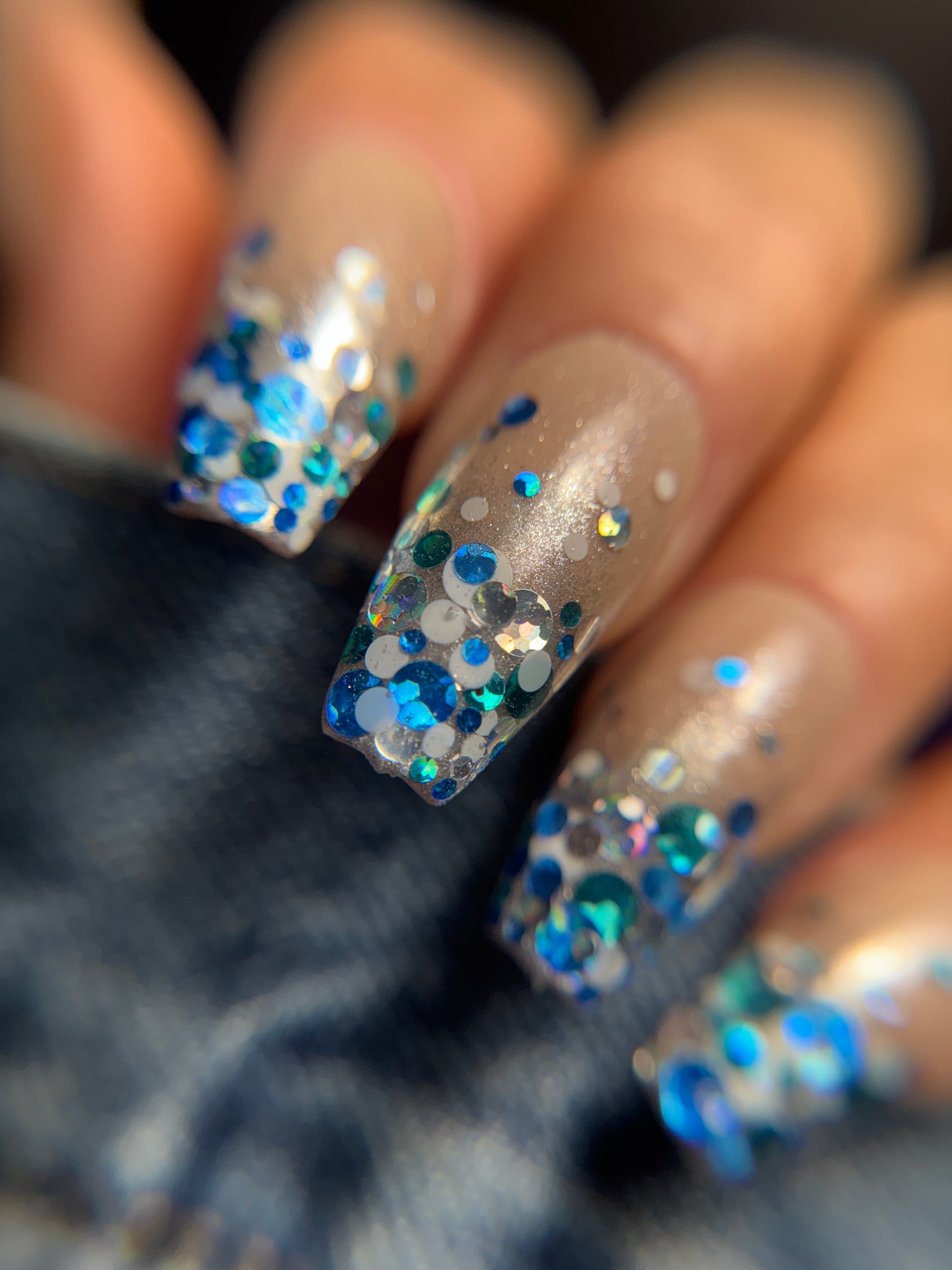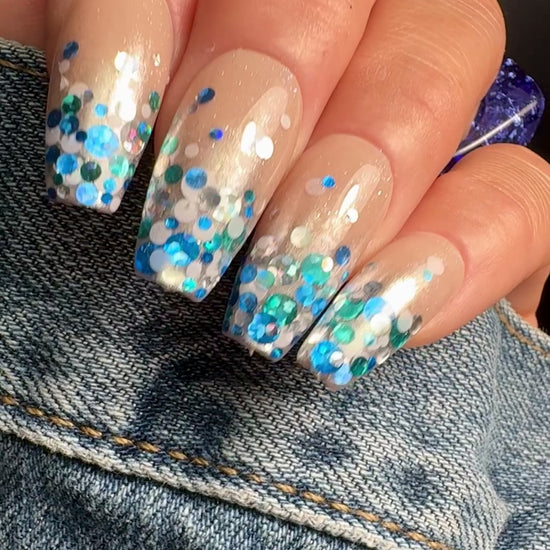 Our Winter Blues Spots Glitter is perfect for the bringing in the frosty, holiday spirit! A custom mix of blues, silver and white spots in varying sizes.